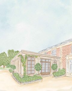 The new Orangery will feature floor-to-ceiling glass windows and doors, opening up to the beautiful gardens, allowing natural sunlight to pour in and fill the space with warmth. We’re incorporating a large glass lantern in the ceiling to enhance the sense of light and openness. The design will reflect classic French chateau elements with a sophisticated, timeless charm.