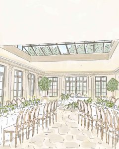 This stunning new space will offer seating for up to 170 guests, making it perfect for both dinner and ceremonies. You’ll have the option to choose between round or long tables for dining, ensuring the room suits your preferred style and event needs. The Orangery will be as versatile as it is beautiful—whether you’re hosting an intimate gathering or a larger celebration, it will be the ideal setting.